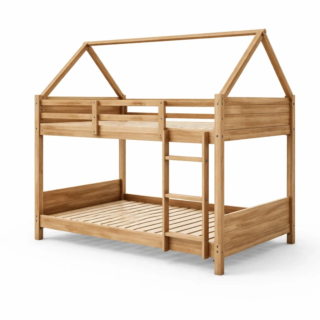 Lit superposé en bois de pin avec échelle 208x98x140 cm