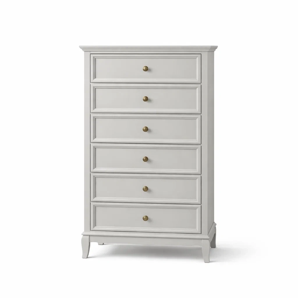 Commode haute en bois blanc avec 5 tiroirs