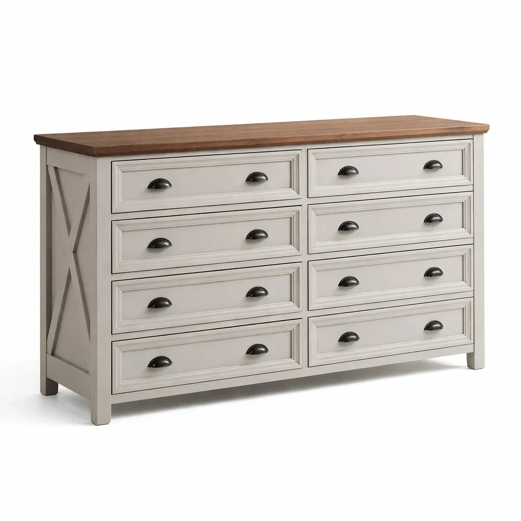 Commode en bois et MDF blanc et brun avec 8 tiroirs