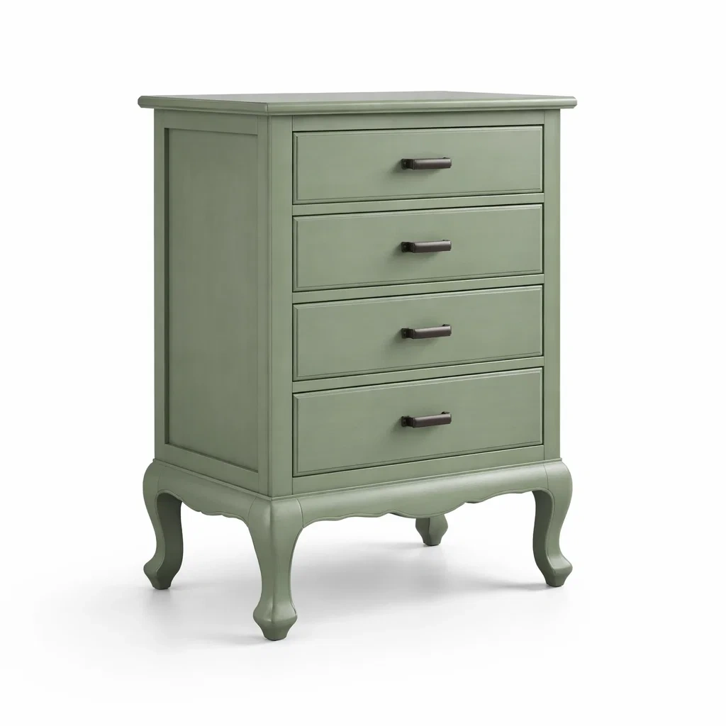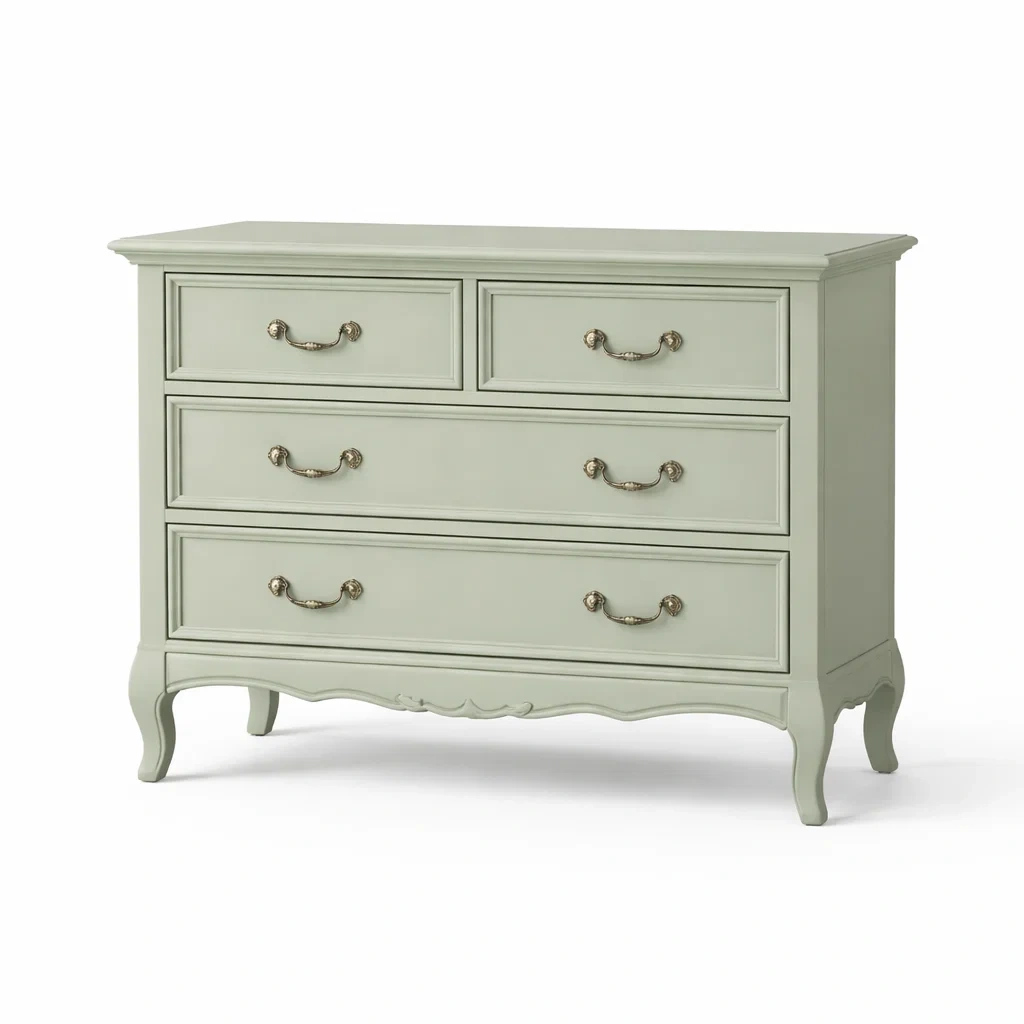 Commode en bois vert pâle avec 4 tiroirs