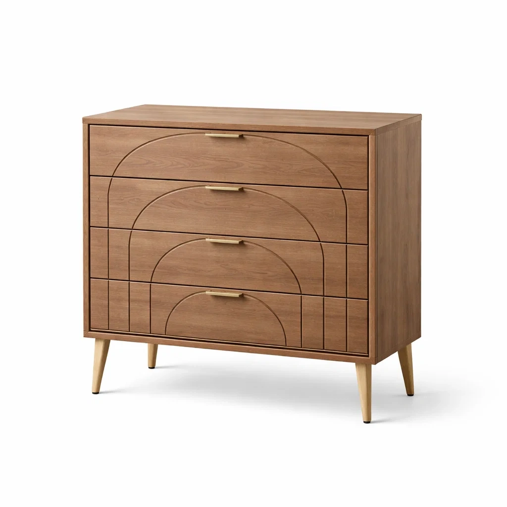 Commode en bois avec poignées dorées