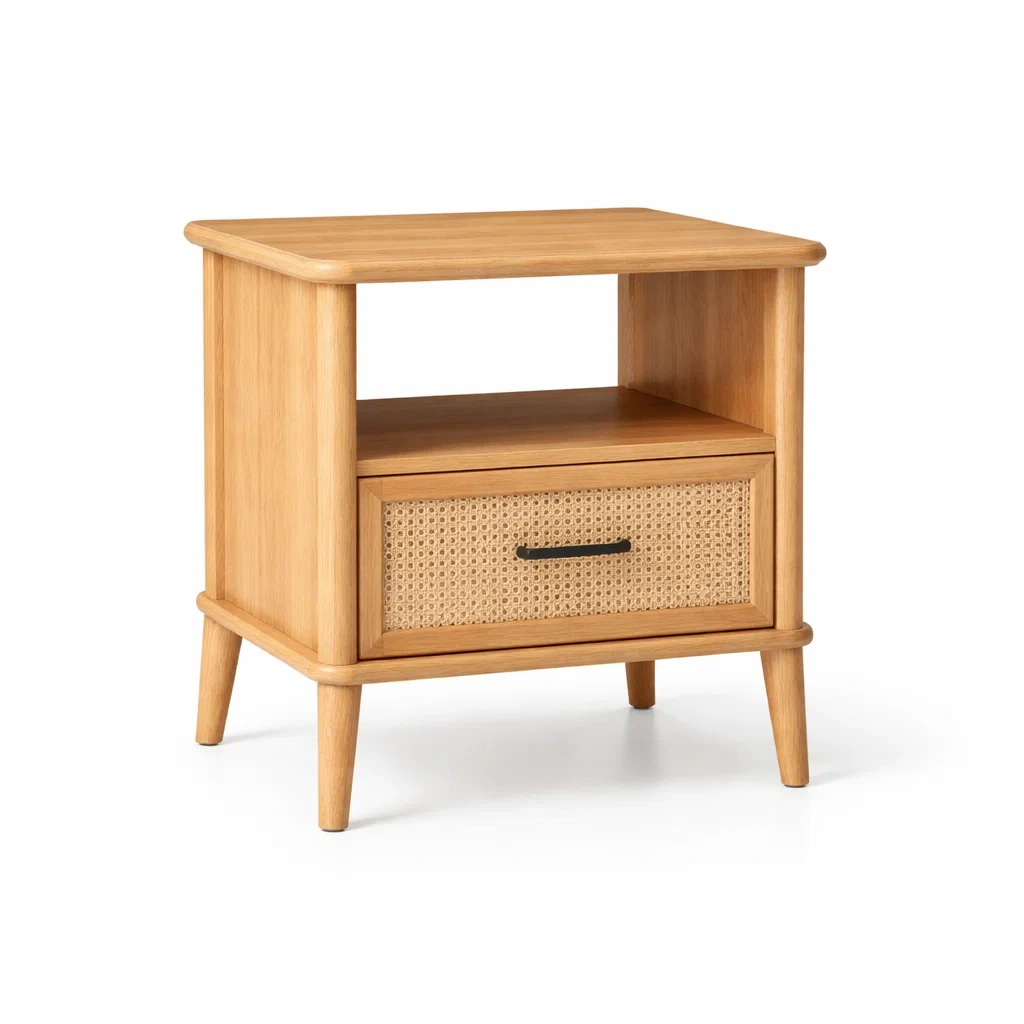 Bois de Chêne Table de chevet avec Tiroir en Rotin