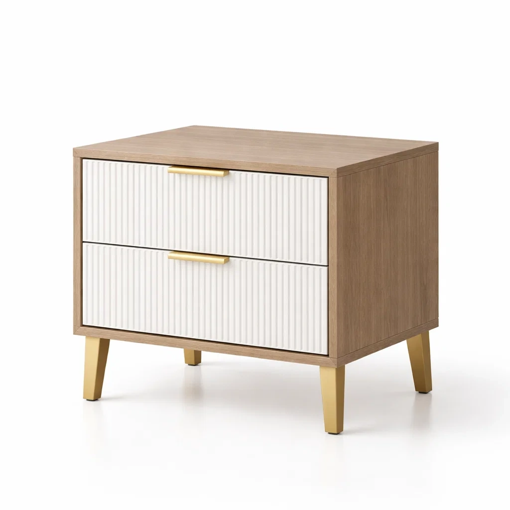 MDF Chêne Clair Table de chevet avec Tiroirs Nervurés Blancs