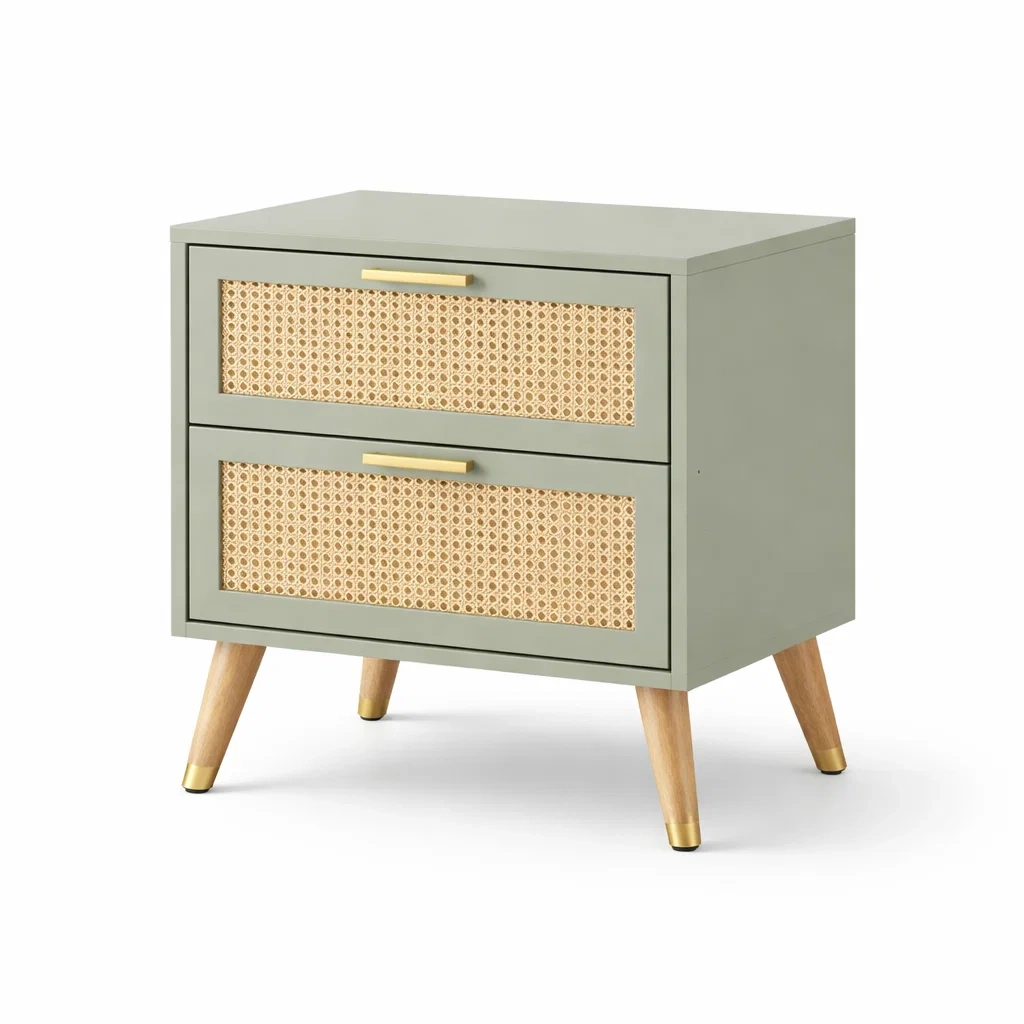 Bois MDF et Rotin Table de chevet 2 Tiroirs