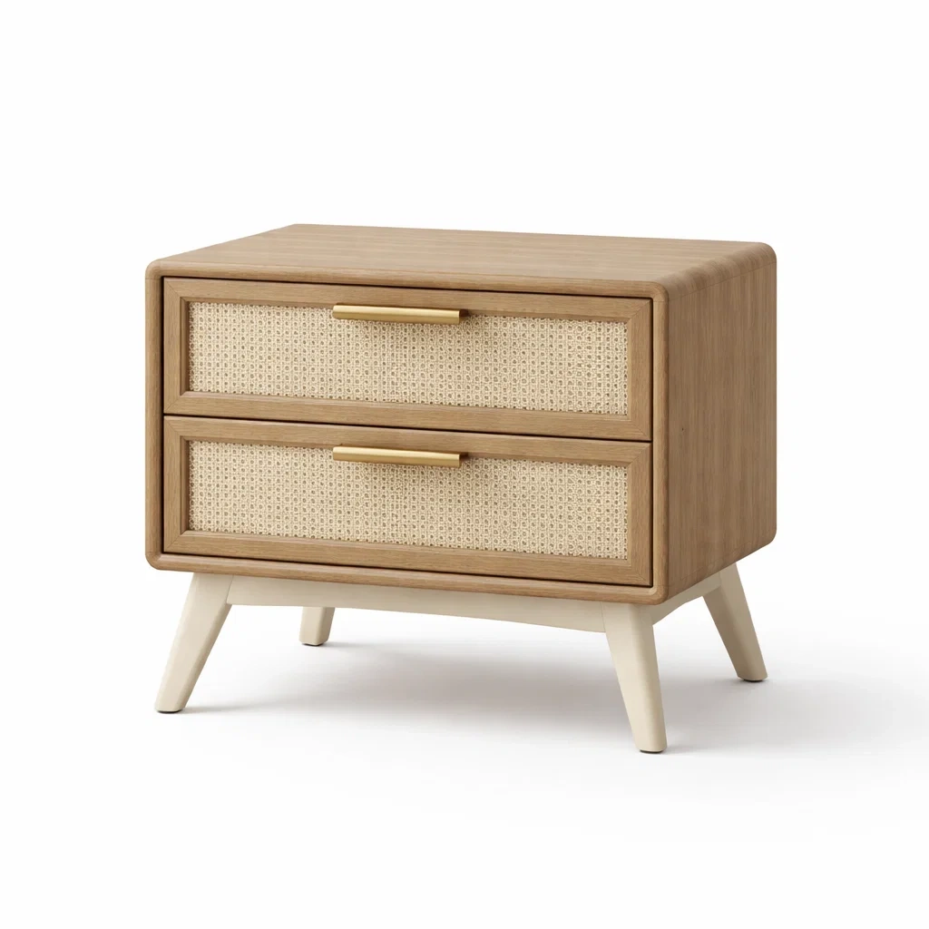 Bois Table de chevet avec Tiroirs en Rotin