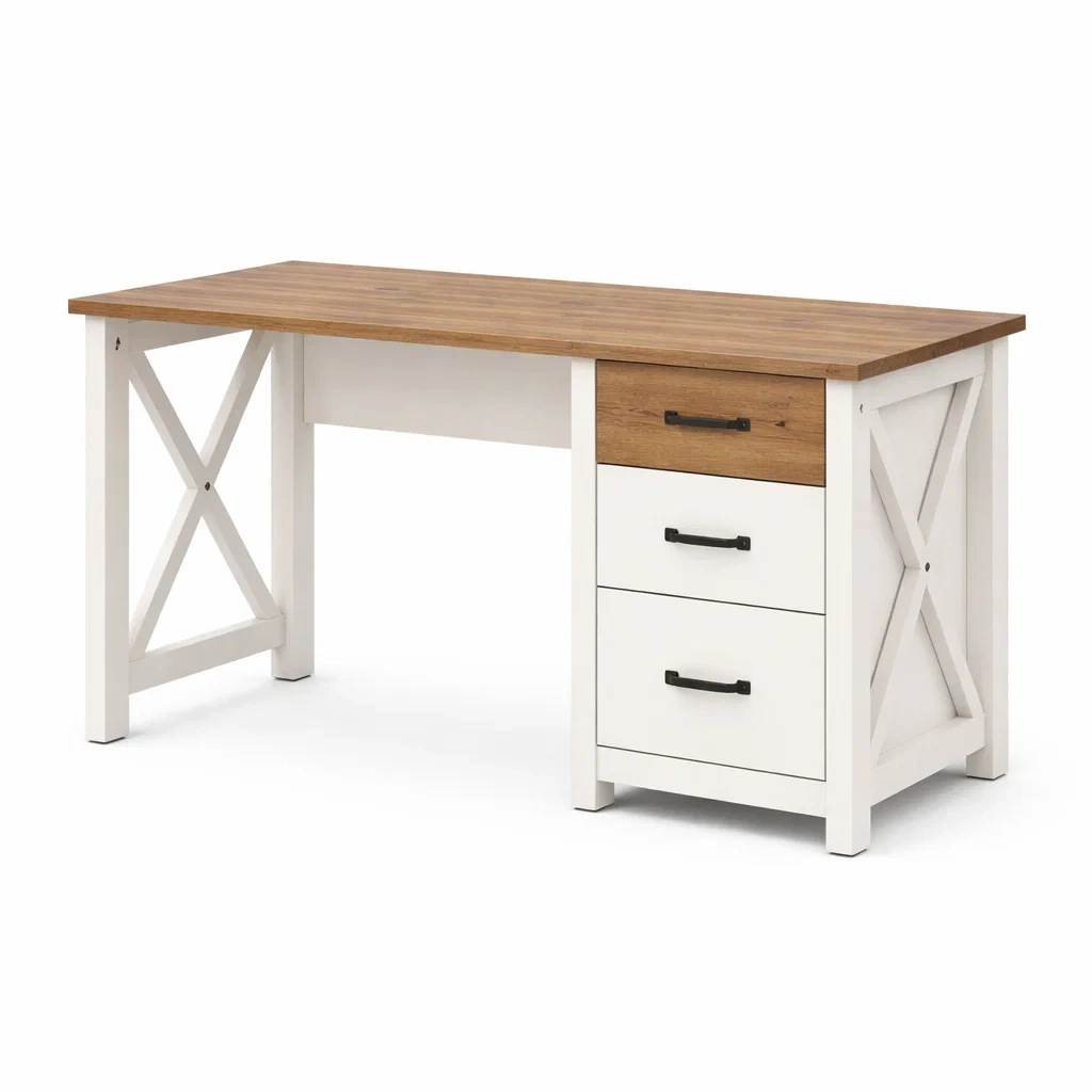 Bureau en bois avec tiroirs blanc et chêne