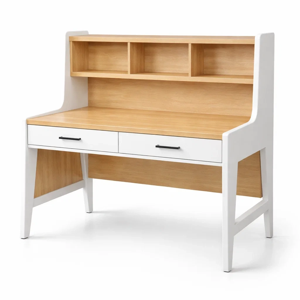 Composants : 1 bureau principal, 3 étagères, 2 tiroirs