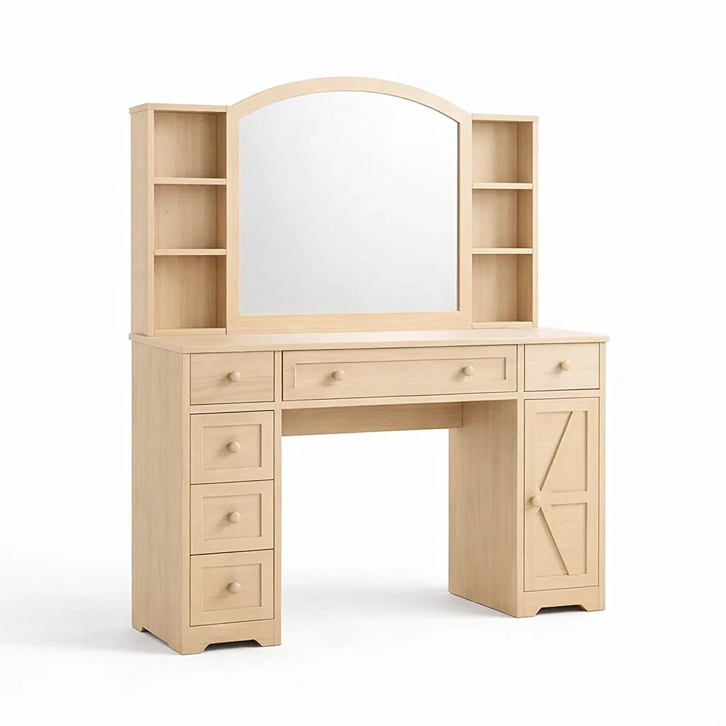 Elle comprend un miroir, 7 tiroirs et 4 étagères pour le rangement.