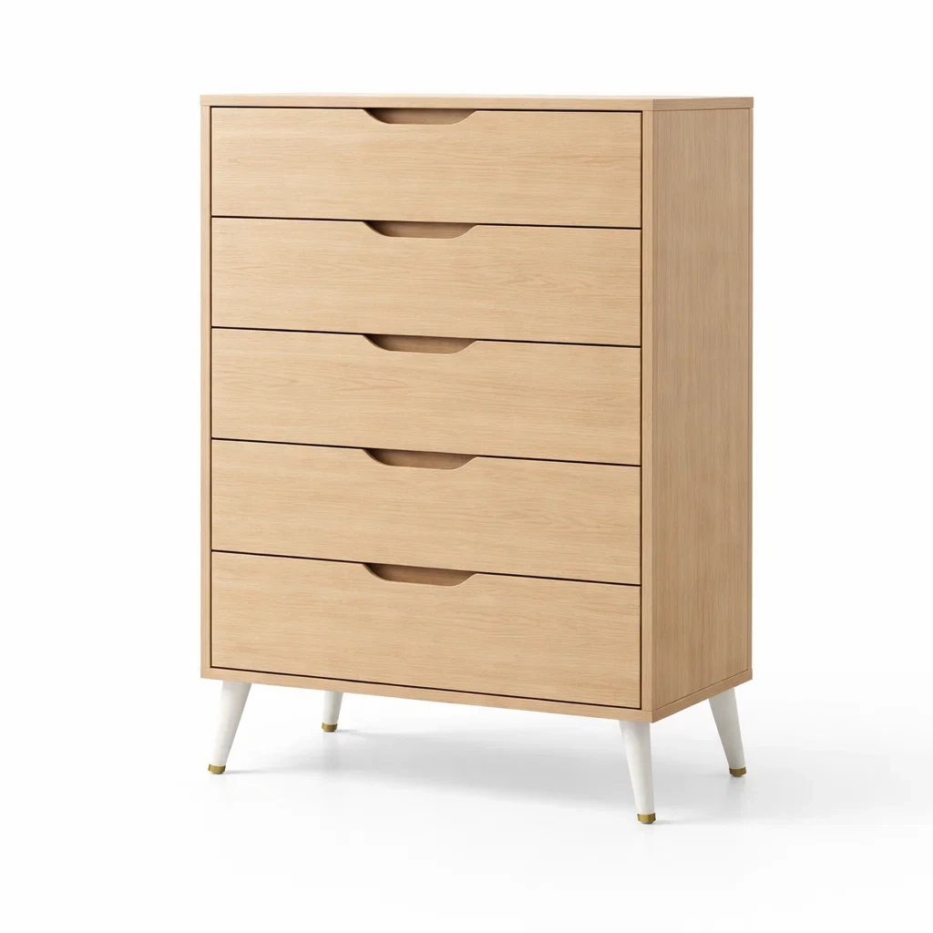 Design : Poignées intégrées, 5 tiroirs.