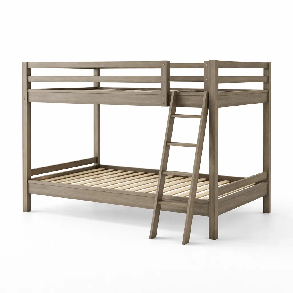 Le lit superposé est fabriqué en bois massif, assurant robustesse et durabilité.